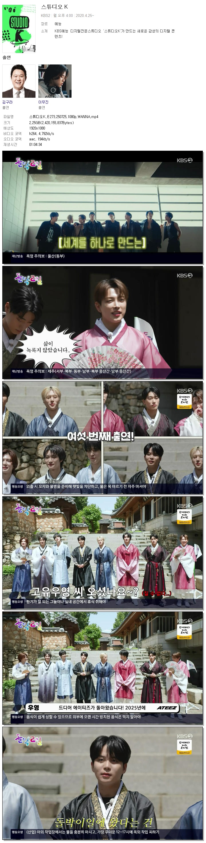 | [KBS2] 스튜디오K.E273.250725.1080p.WANNA.mp4 | 2.3 G | 01:04:34 | 1920x1080 |