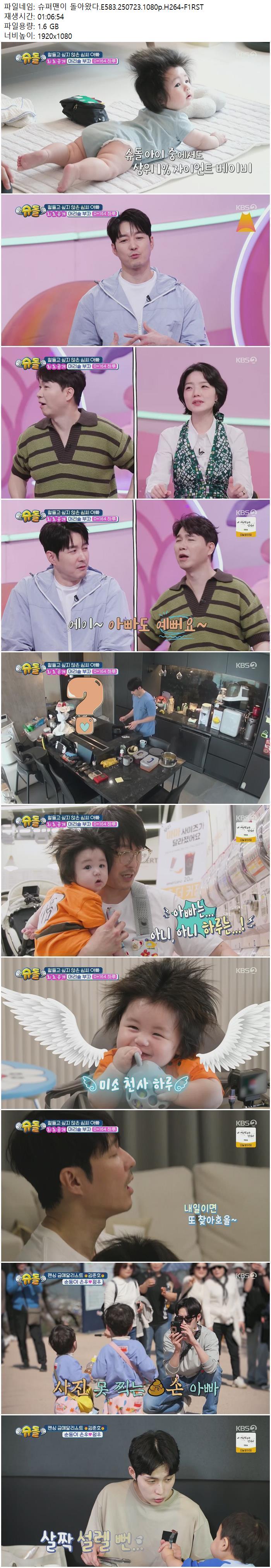 | 슈퍼맨이 돌아왔다.E583.250723.1080p.H264-F1RST.mp4 | 1.6 G | 01:06:54 | 1920x1080 |