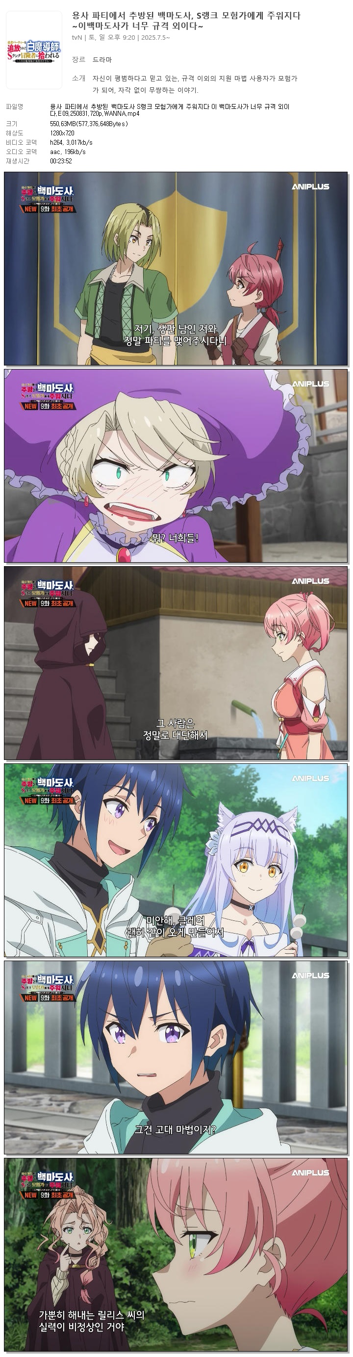 | 용사 파티에서 추방된 백마도사 S랭크 모험가에게 주워지다 이 백마도사가 너무 규격 외이다.E09.250831.720p.WANNA.mp4 | 550.6 M | 00:23:52 | 1280x720 |