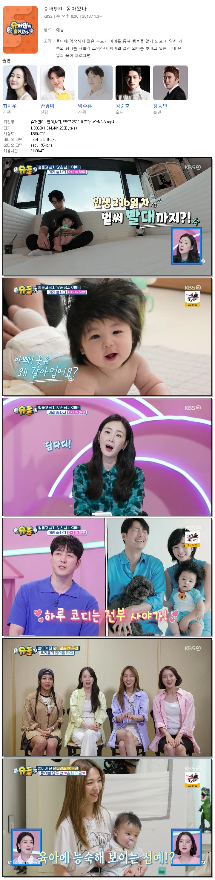 | [KBS2] 슈퍼맨이 돌아왔다.E597.250910.720p.WANNA[우혜림, 심형탁].mp4 | 1.5 G | 01:06:47 | 1280x720 |