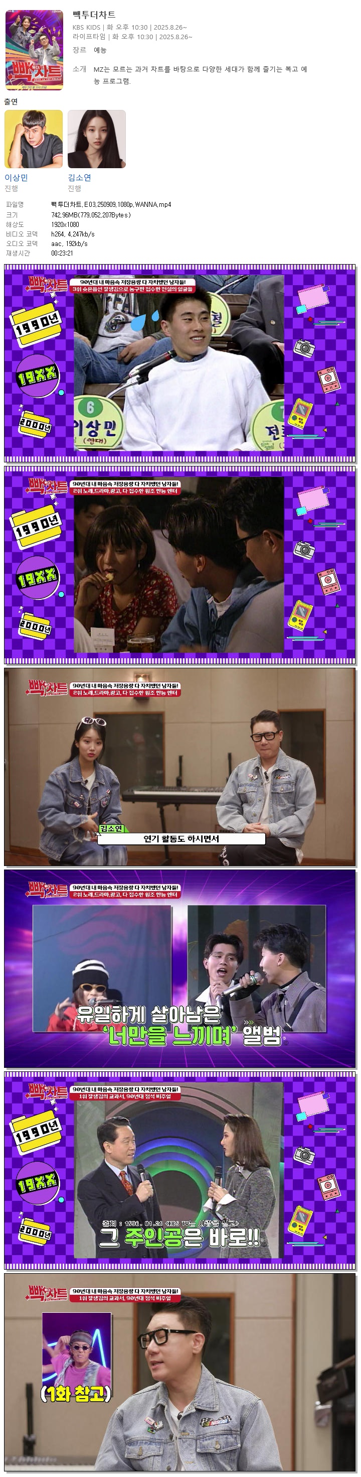 | 빽투더차트.E03.250909.1080p.WANNA.mp4 | 743 M | 00:23:21 | 1920x1080 |