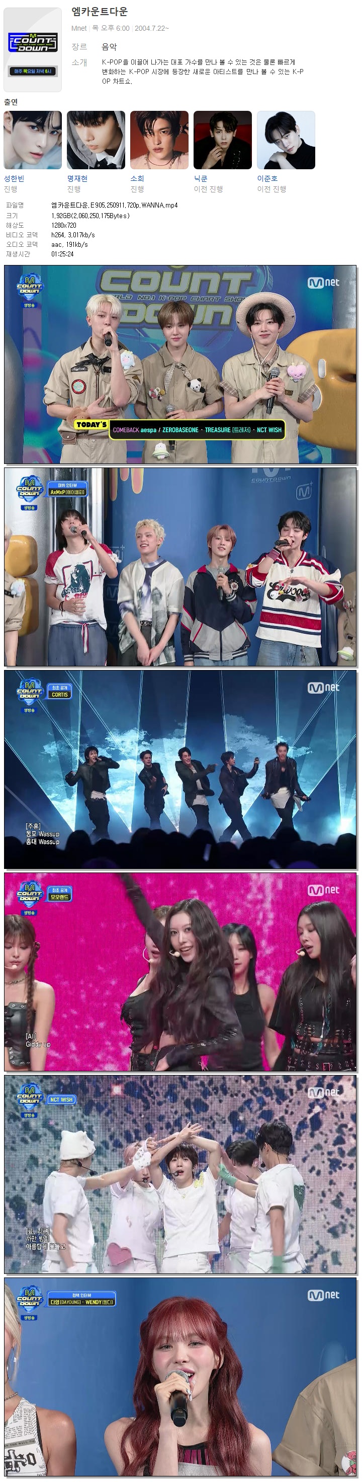 | [M.net] 엠카운트다운.E905.250911.720p.WANNA[몬스타엑스, 에스파].mp4 | 1.9 G | 01:25:24 | 1280x720 |