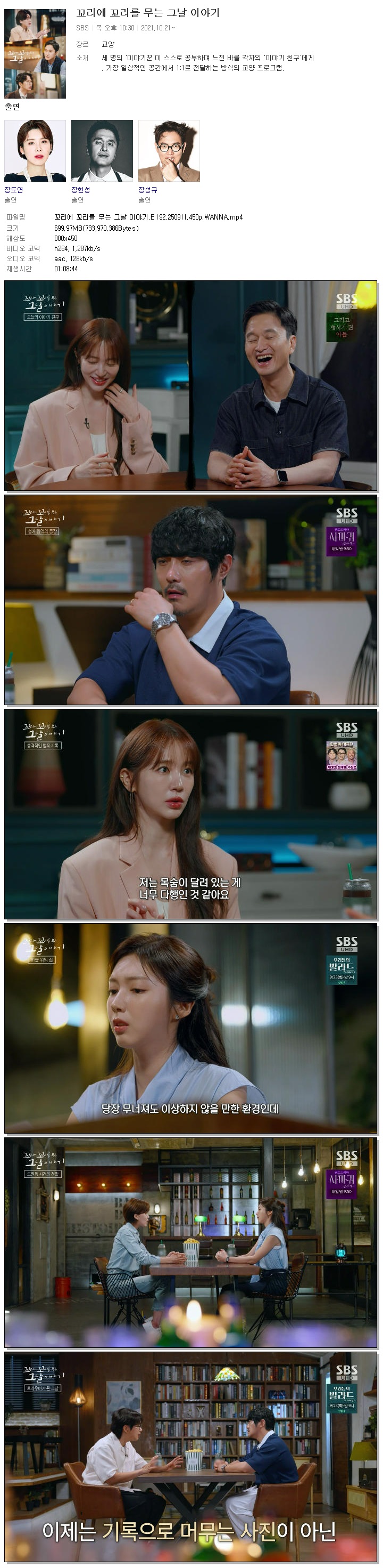| [SBS] 꼬리에 꼬리를 무는 그날 이야기.E192.250911.450p.WANNA[윤은혜, KCM].mp4 | 700 M | 01:08:44 | 800x450 |