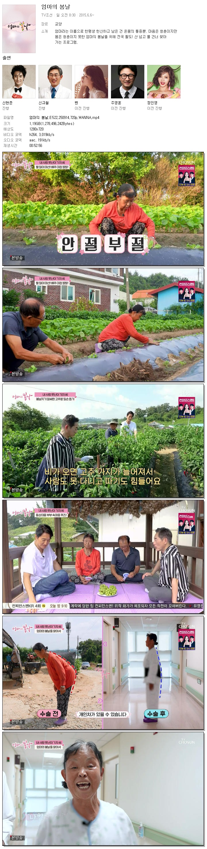 | [TV조선] 엄마의 봄날.E522.250914.720p.WANNA.mp4 | 1.2 G | 00:52:56 | 1280x720 |