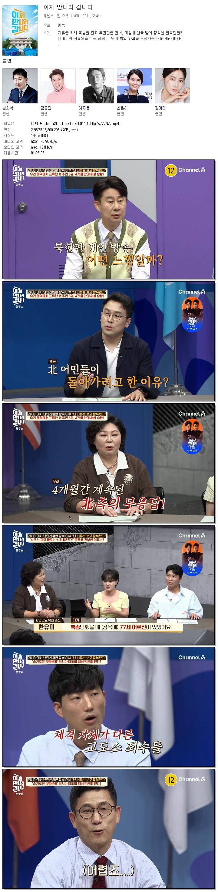 | [채널A] 이제 만나러 갑니다.E715.250914.1080p.WANNA[남희석, 김종민].mp4 | 3 G | 01:25:26 | 1920x1080 |