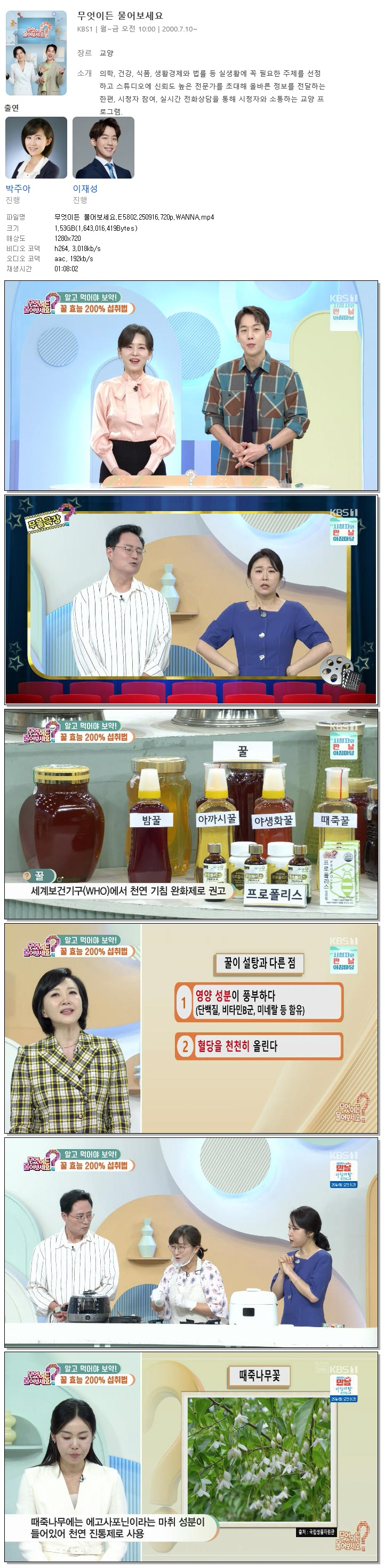 | [KBS1] 무엇이든 물어보세요.E5802.250916.720p.WANNA[박주아, 이재성].mp4 | 1.5 G | 01:08:02 | 1280x720 |