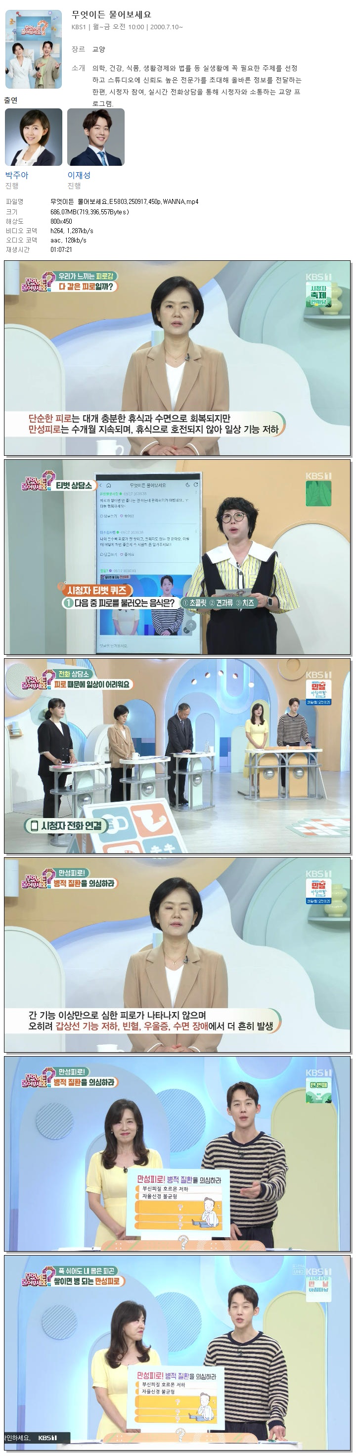 | [KBS1] 무엇이든 물어보세요.E5803.250917.450p.WANNA[박주아, 이재성].mp4 | 686.1 M | 01:07:21 | 800x450 |