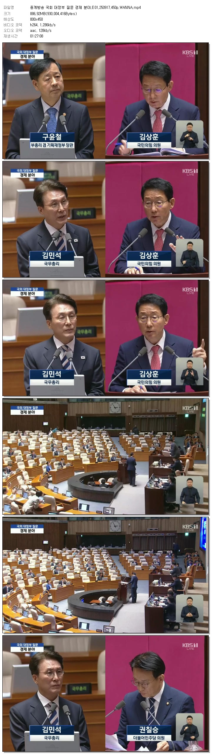 | [KBS1] 중계방송 국회 대정부 질문 경제 분야.E01.250917.450p.WANNA.mp4 | 886.9 M | 01:27:08 | 800x450 |