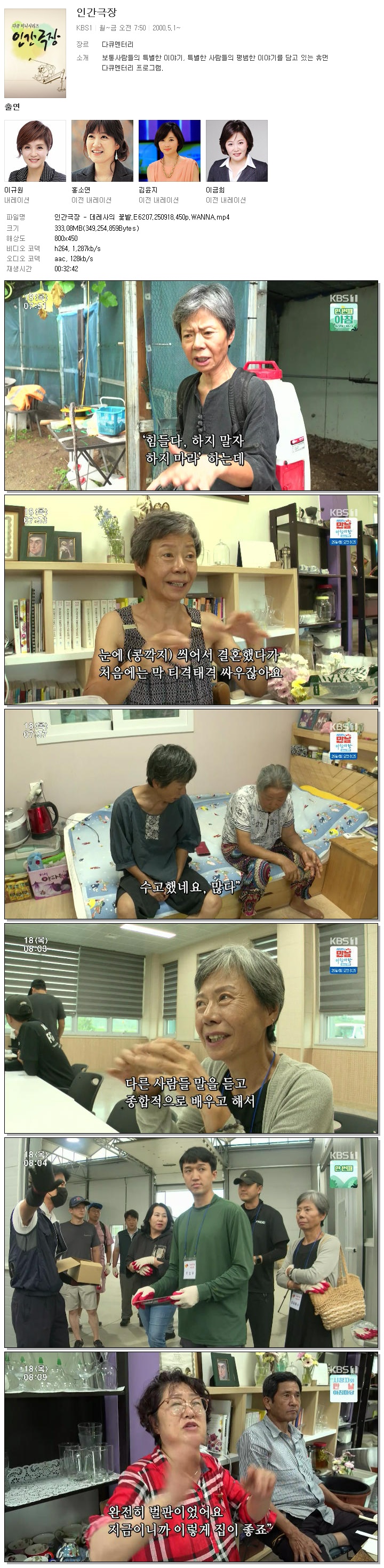 | [KBS1] 인간극장.E6207.250918.450p.WANNA.mp4 | 333.1 M | 00:32:42 | 800x450 |