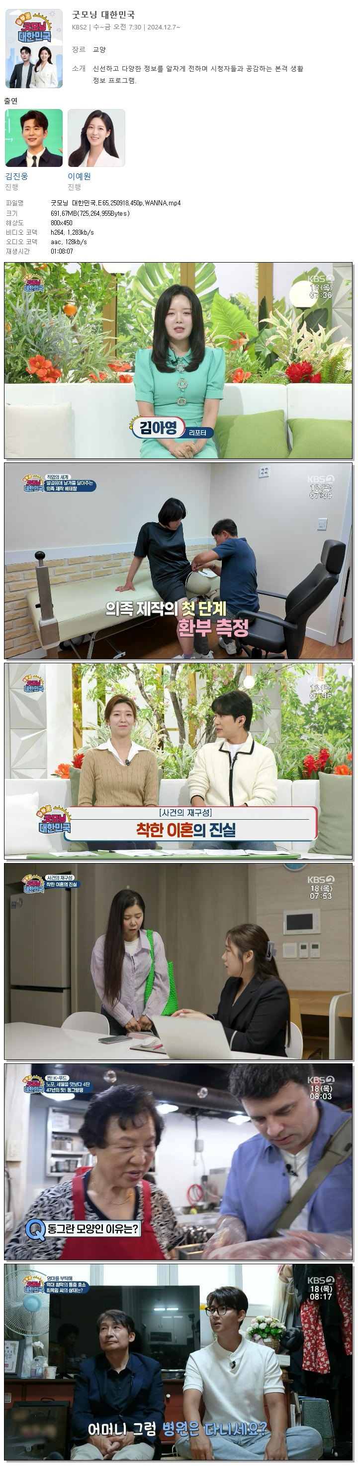 [KBS2] 굿모닝 대한민국.E65.250918.450p.WANNA[김진웅, 이예원].mp4 691.7 M 01:08:07 800x450