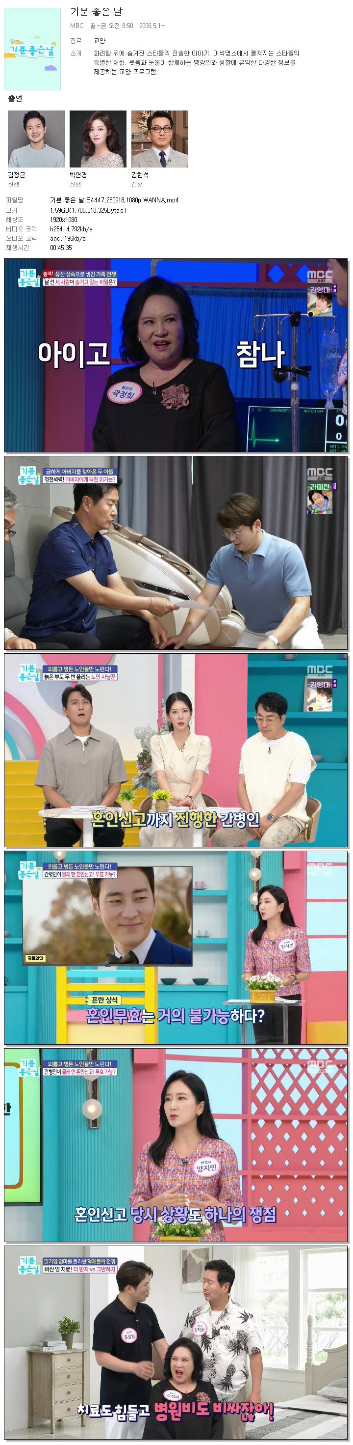 | [MBC] 기분 좋은 날.E4447.250918.1080p.WANNA[서인, 박연경].mp4 | 1.6 G | 00:45:35 | 1920x1080 |