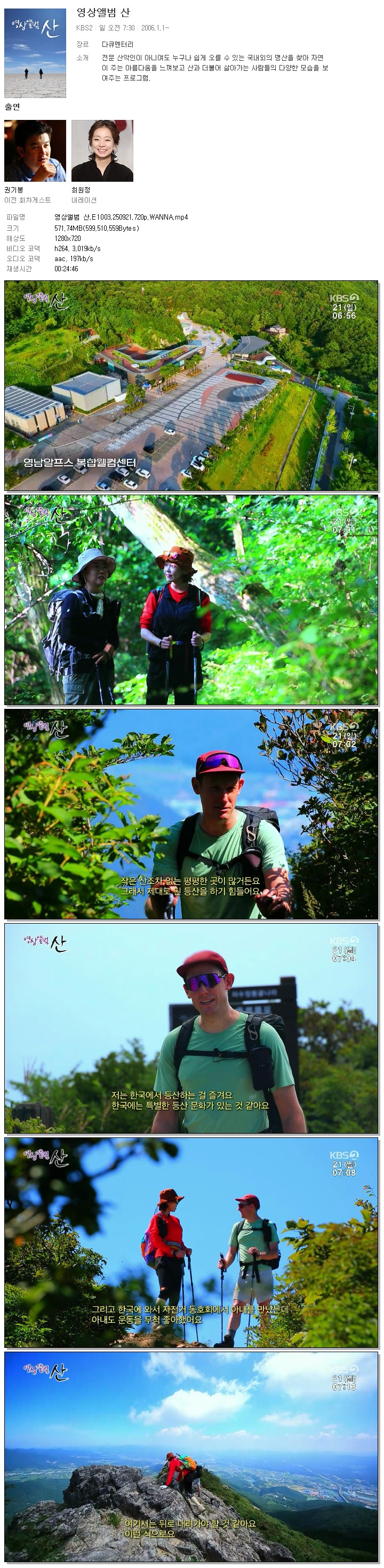 [KBS2] 영상앨범 산.E1003.250921.720p.WANNA.mp4 571.7 M 00:24:46 1280x720