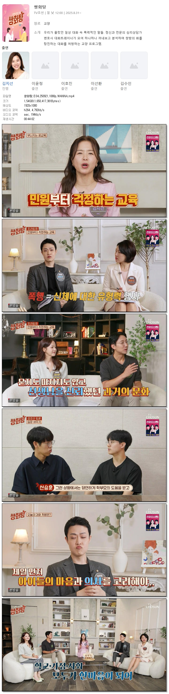 | [TV조선] 쌍화탕.E04.250921.1080p.WANNA[김지선, 이윤정].mp4 | 1.5 G | 00:44:02 | 1920x1080 |