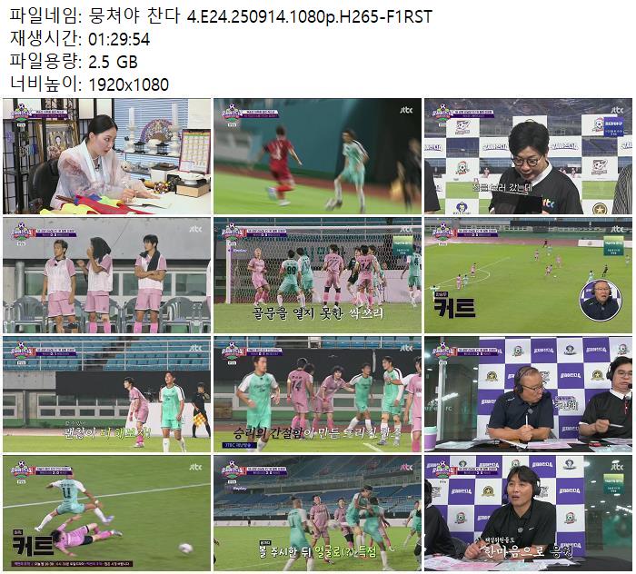 | 뭉쳐야 찬다 4.E24.250914.1080p.H265-F1RST.mp4 | 2.5 G | 01:29:00 | 1920x1080 |
