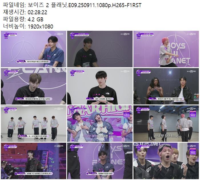 | 보이즈 2 플래닛.E09.250911.1080p.H265-F1RST.mp4 | 4.2 G | 02:28:00 | 1920x1080 |