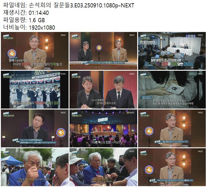 | 손석희의 질문들3.E03.250910.1080p-NEXT.mp4 | 1.6 G | 01:14:00 | 1920x1080 |