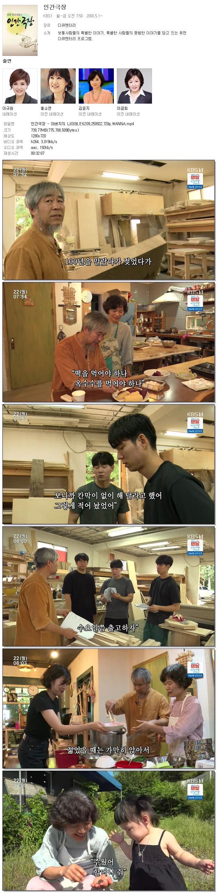 [KBS1] 인간극장.E6209.250922.720p.WANNA.mp4 739.8 M 00:32:07 1280x720