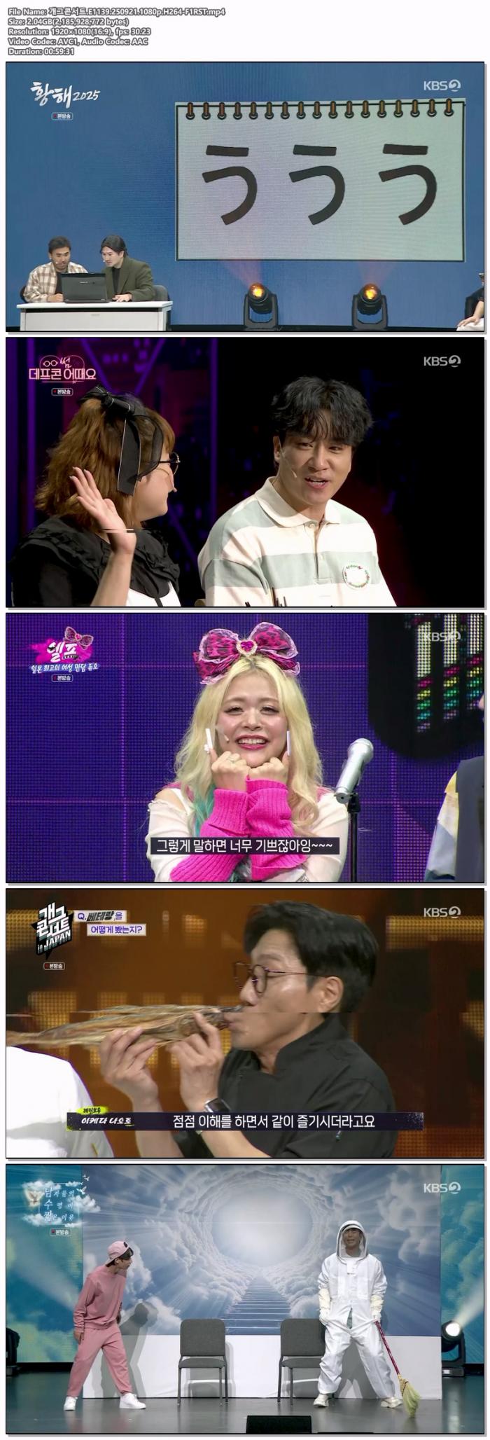 | 개그콘서트.E1139.250921.1080p.H264-F1RST.mp4 | 2 G | 00:59:31 | 1920x1080 |