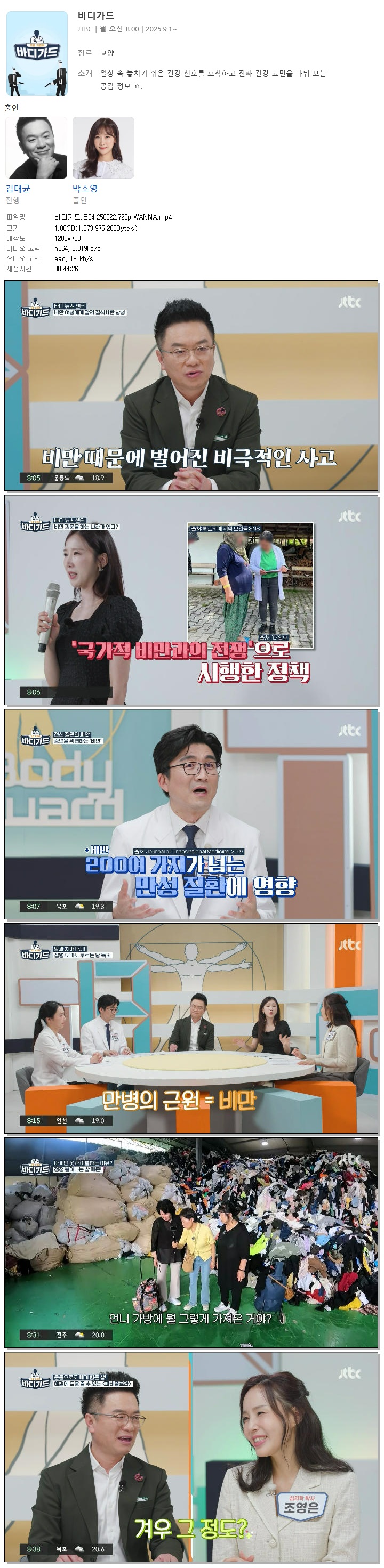 | [JTBC] 바디가드.E04.250922.720p.WANNA[김태균, 박소영].mp4 | 1 G | 00:44:26 | 1280x720 |