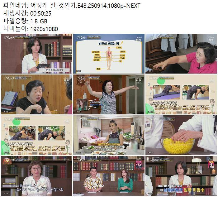 | 어떻게 살 것인가.E43.250914.1080p-NEXT.mp4 | 1.8 G | 00:50:25 | 1920x1080 |