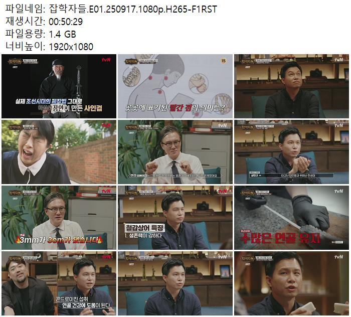 | 잡학자들.E01.250917.1080p.H265-F1RST.mp4 | 1.4 G | 00:50:29 | 1920x1080 |
