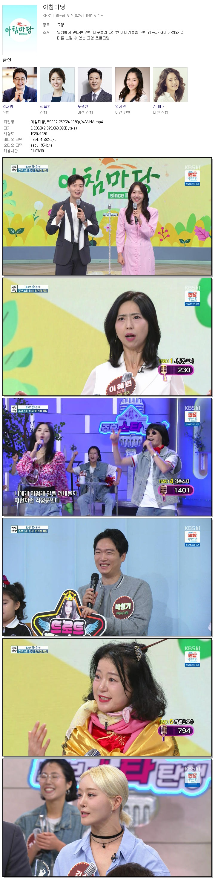 | [KBS1] 아침마당.E9997.250924.1080p.WANNA[김재원, 엄지인].mp4 | 2.2 G | 01:03:30 | 1920x1080 |