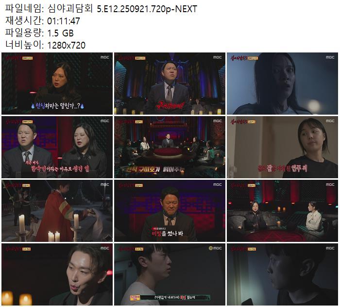 | 심야괴담회 5.E12.250921.720p-NEXT.mp4 | 1.5 G | 01:11:00 | 1280x720 |