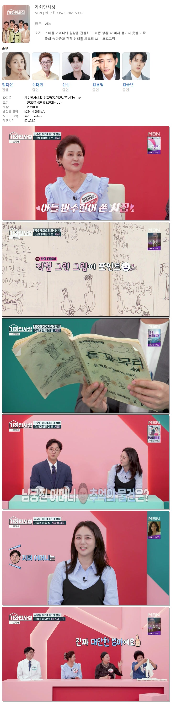| [MBN] 가화만사성.E15.250930.1080p.WANNA[정다은, 성대현].mp4 | 1.4 G | 00:39:30 | 1920x1080 |