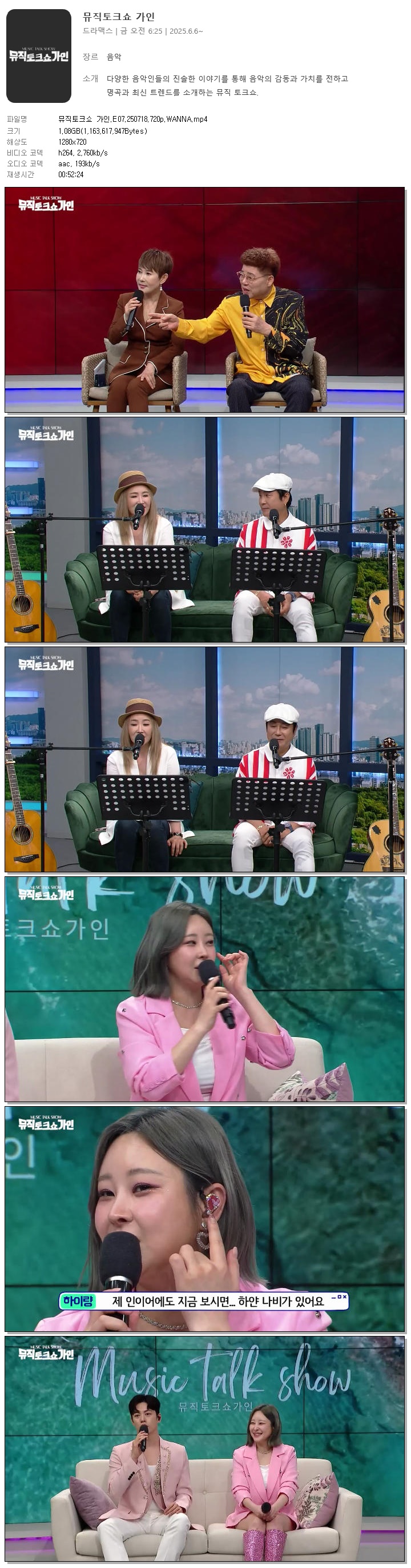 [드라맥스] 뮤직토크쇼 가인.E07.250718.720p.WANNA[현선아, 정원수].mp4 1.1 G 00:52:24 1280x720