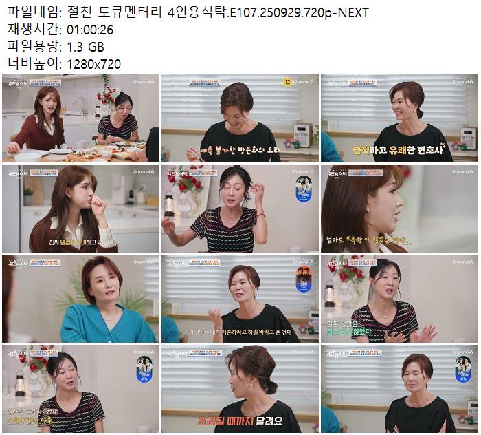| 절친 토큐멘터리 4인용식탁.E107.250929.720p-NEXT.mp4 | 1.3 G | 01:00:00 | 1280x720 |