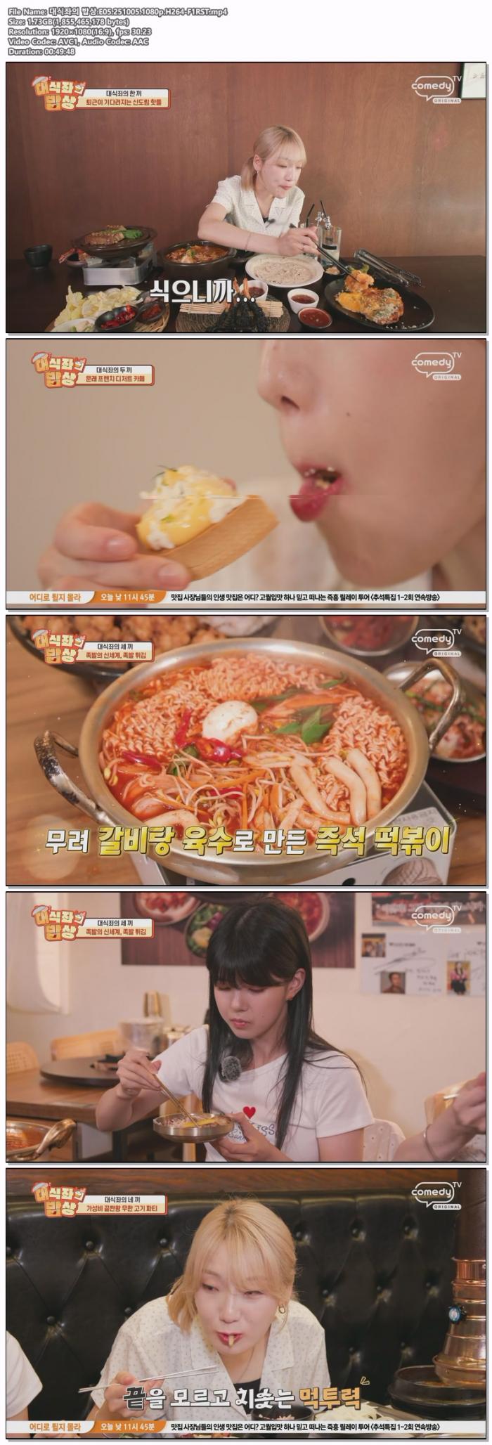 | 대식좌의 밥상.E05.251005.1080p.H264-F1RST.mp4 | 1.7 G | 00:49:48 | 1920x1080 |