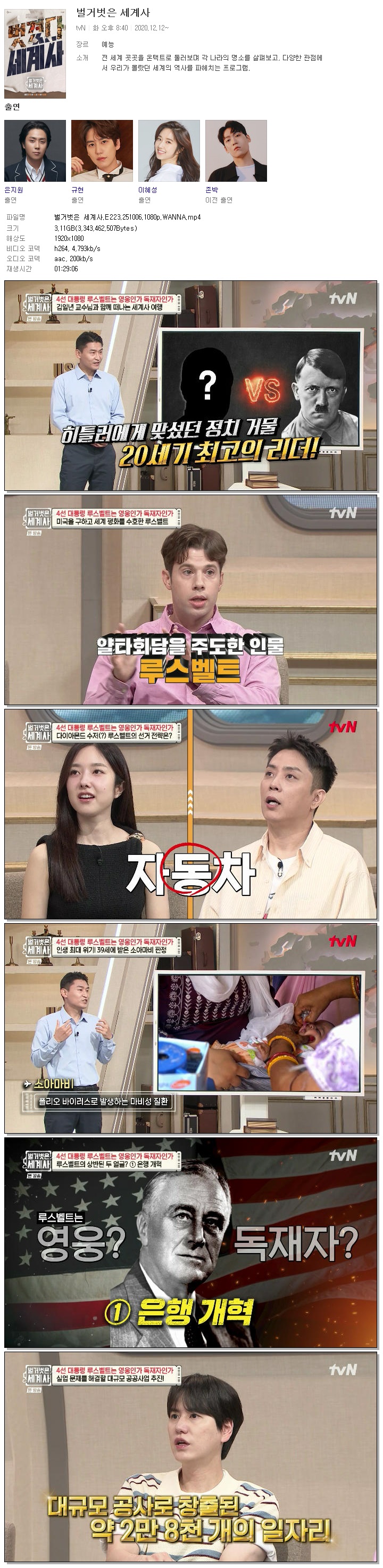 [TVN] 벌거벗은 세계사.E223.251006.1080p.WANNA[은지원, 규현].mp4 3.1 G 01:29:06 1920x1080