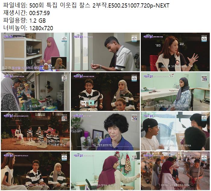 | 500회 특집 이웃집 찰스 2부작.E500.251007.720p-NEXT.mp4 | 1.2 G | 00:57:59 | 1280x720 |