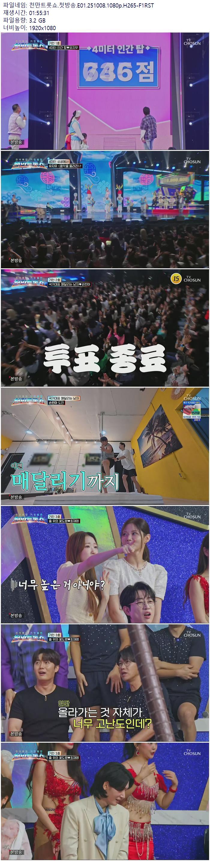 | 천만트롯쇼.첫방송.E01.251008.1080p.H265-F1RST.mp4 | 3.2 G | 01:55:00 | 1920x1080 |