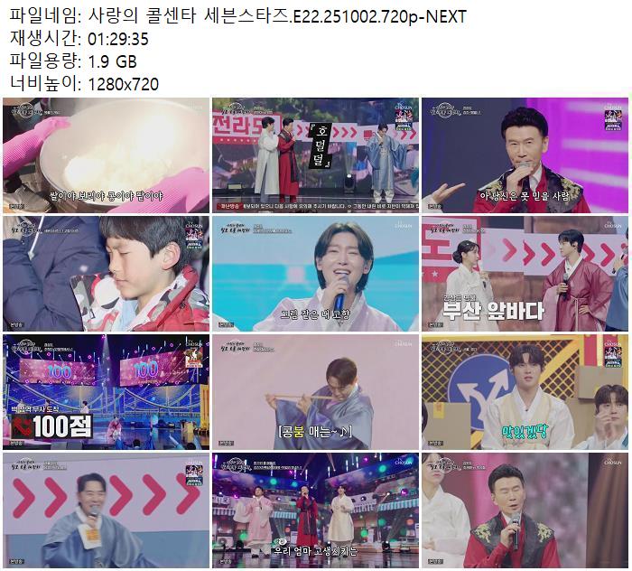 | 사랑의 콜센타 세븐스타즈.E22.251002.720p-NEXT.mp4 | 1.9 G | 01:29:00 | 1280x720 |