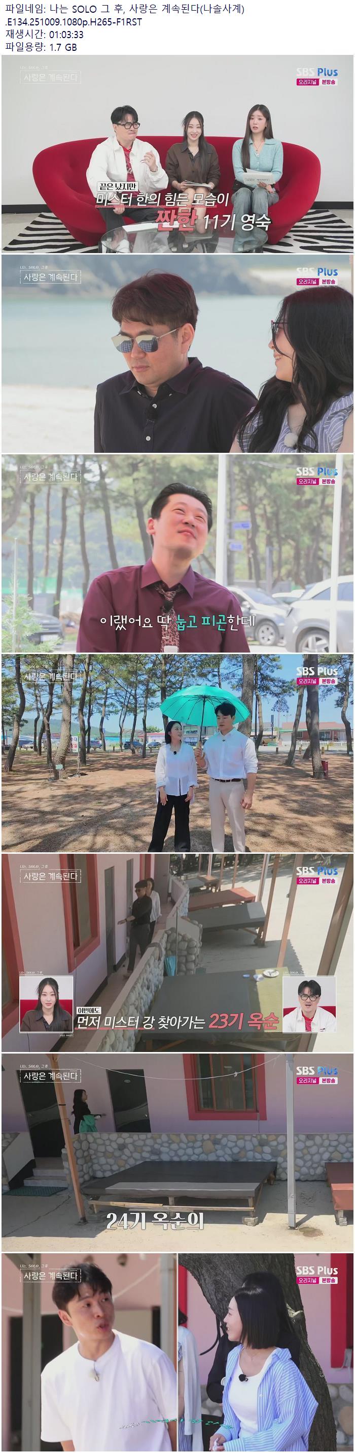 | 나는 SOLO 그 후, 사랑은 계속된다(나솔사계).E134.251009.1080p.H265-F1RST.mp4 | 1.7 G | 01:03:00 | 1920x1080 |