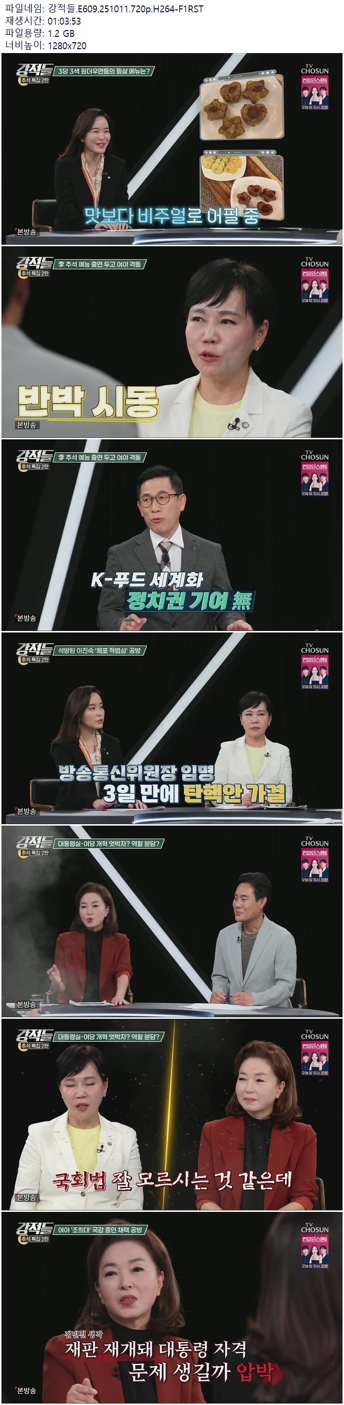 | 강적들.E609.251011.720p.H264-F1RST.mp4 | 1.2 G | 01:03:00 | 1280x720 |