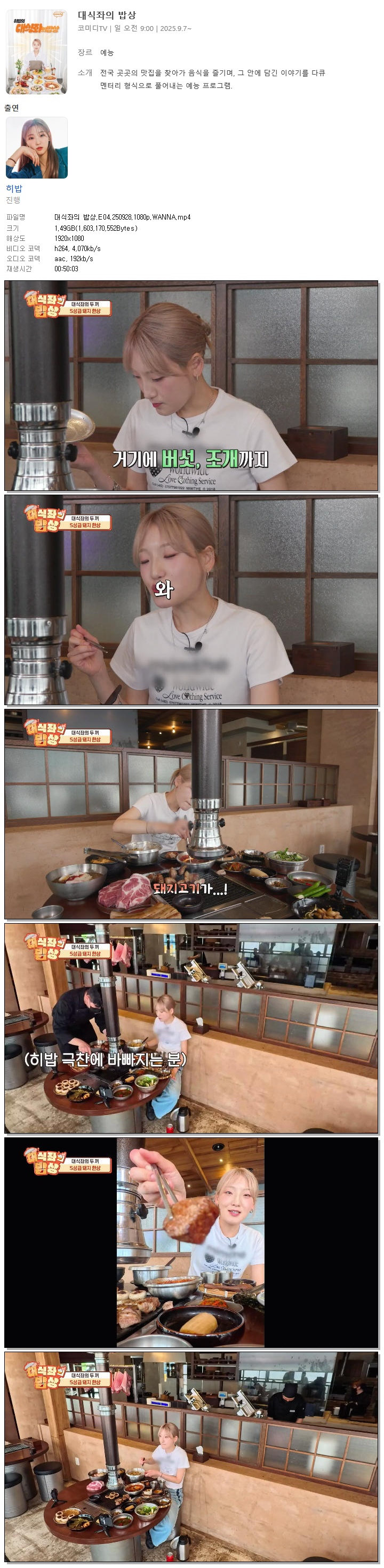 [코미디TV] 대식좌의 밥상.E04.250928.1080p.WANNA[히밥].mp4 1.5 G 00:50:03 1920x1080