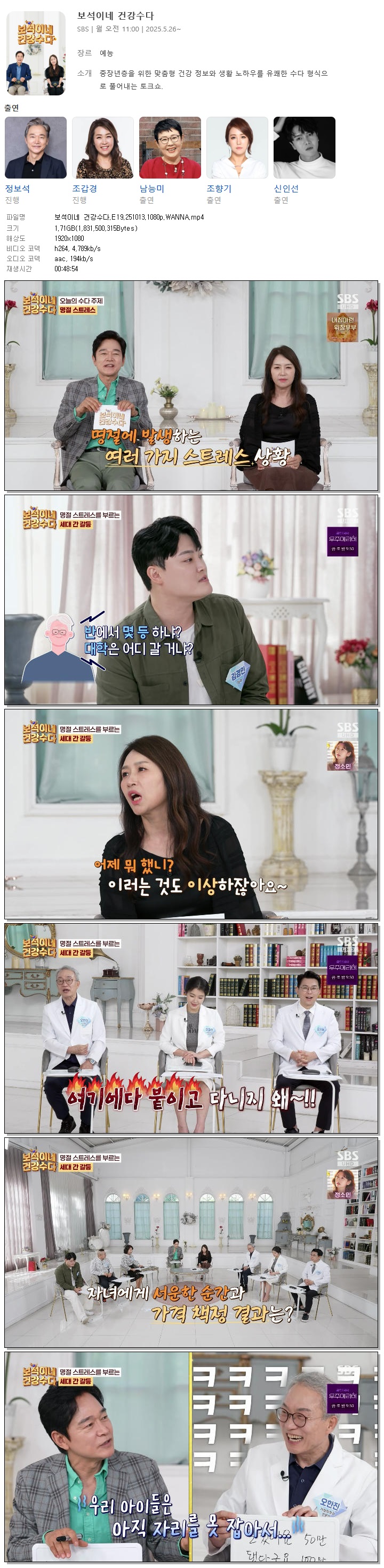 [SBS] 보석이네 건강수다.E19.251013.1080p.WANNA[정보석, 조갑경].mp4 1.7 G 00:48:54 1920x1080