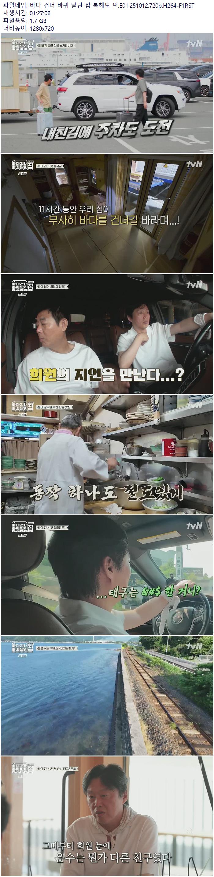 | 바다 건너 바퀴 달린 집 북해도 편.E01.251012.720p.H264-F1RST.mp4 | 1.7 G | 01:27:00 | 1280x720 |