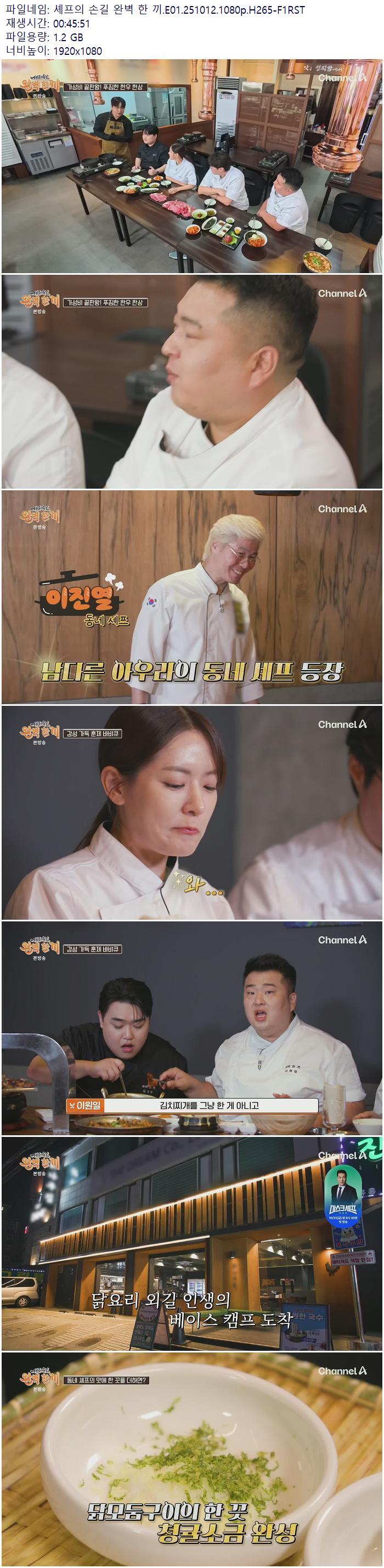| 셰프의 손길 완벽 한 끼.E01.251012.1080p.H265-F1RST.mp4 | 1.2 G | 00:45:51 | 1920x1080 |