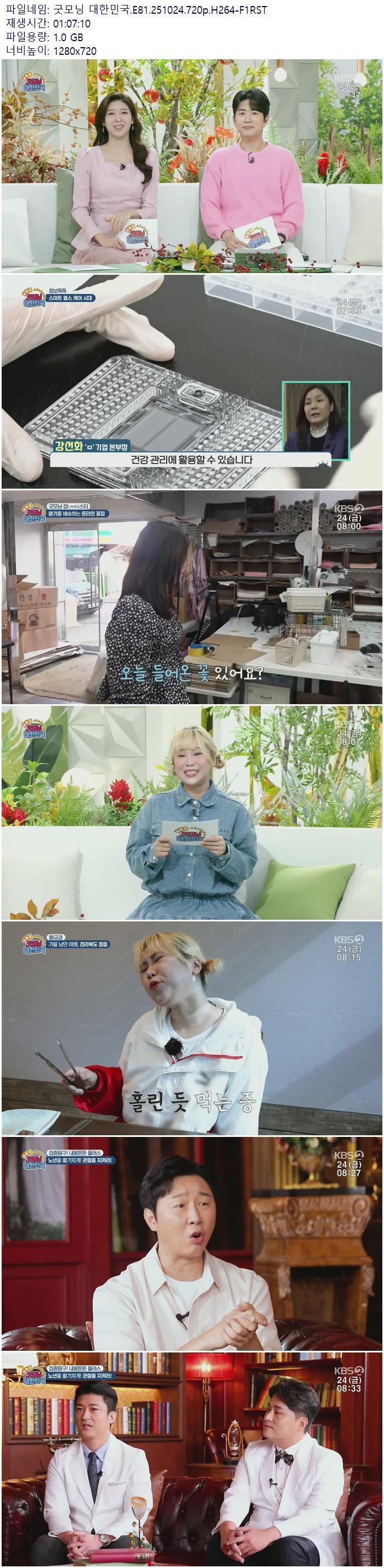 | 굿모닝 대한민국.E81.251024.720p.H264-F1RST.mp4 | 1 G | 01:07:00 | 1280x720 |