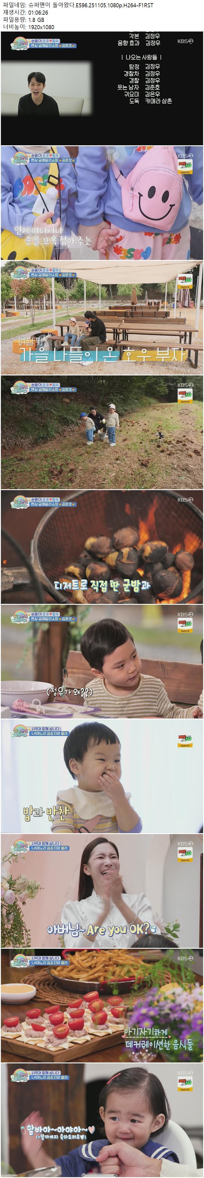 | 슈퍼맨이 돌아왔다.E596.251105.1080p.H264-F1RST.mp4 | 1.8 G | 01:06:26 | 1920x1080 |