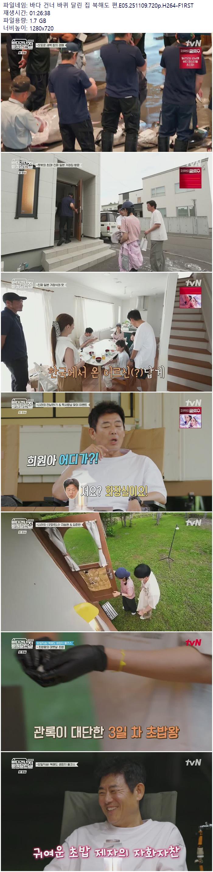 | 바다 건너 바퀴 달린 집 북해도 편.E05.251109.720p.H264-F1RST.mp4 | 1.7 G | 01:26:00 | 1280x720 |