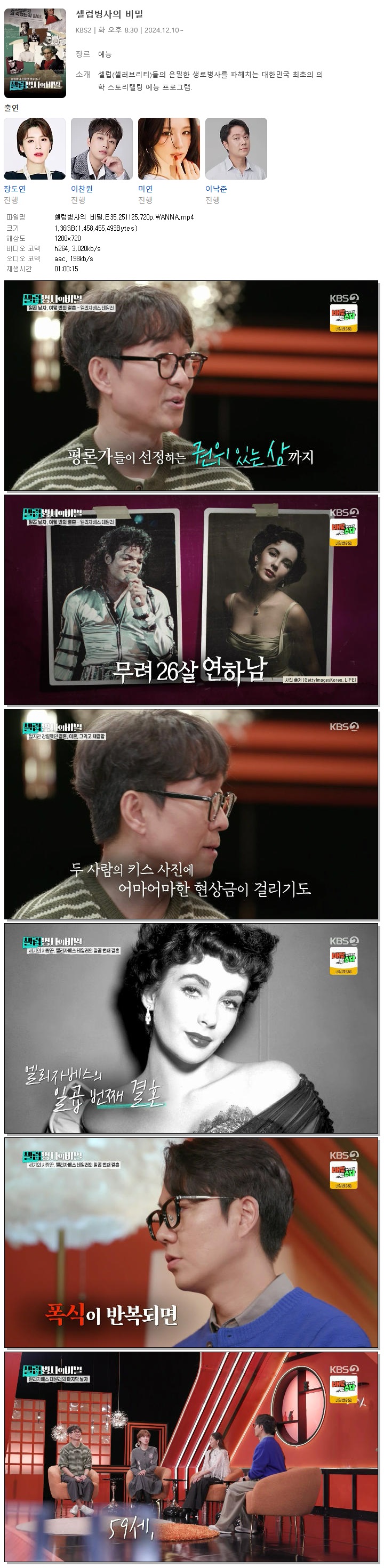 | [KBS2] 셀럽병사의 비밀.E35.251125.720p.WANNA[장도연, 이찬원].mp4 | 1.4 G | 01:00:15 | 1280x720 |