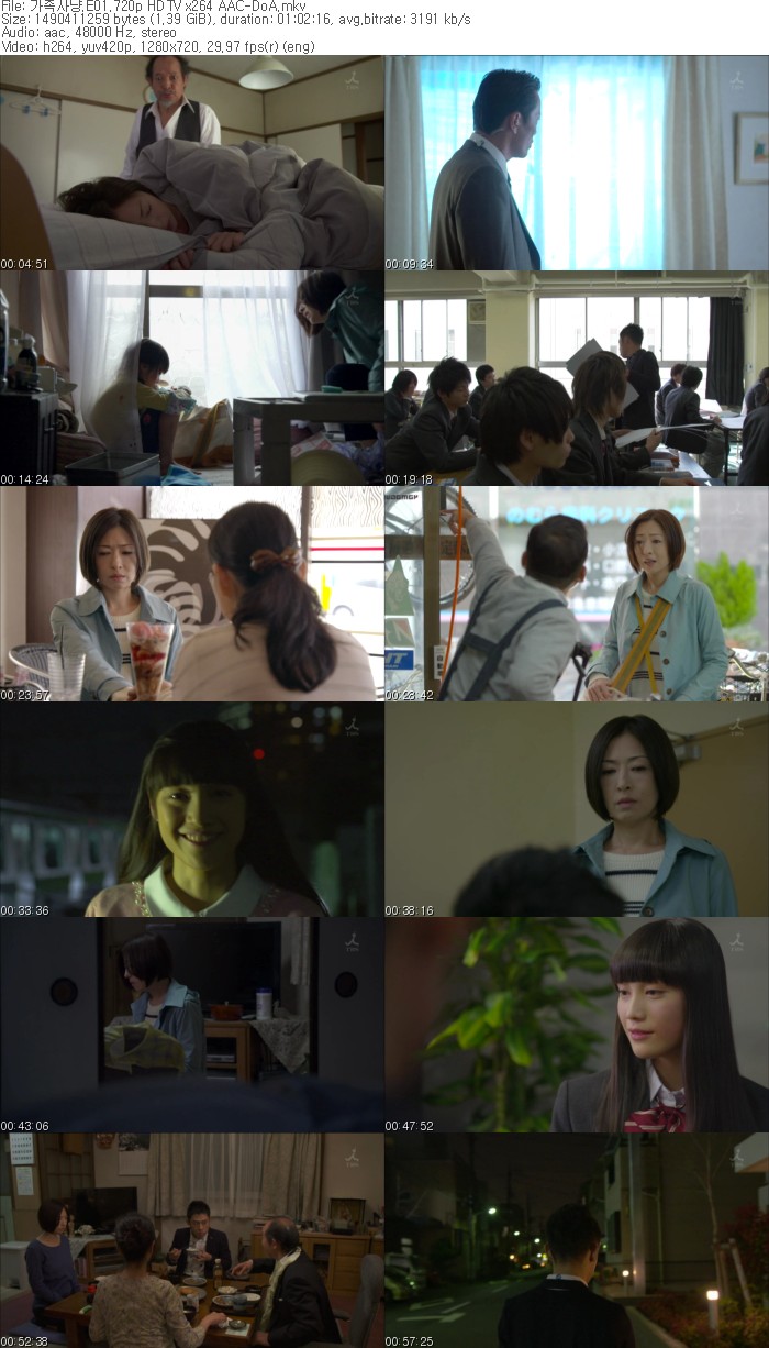 | 가족사냥.E01.720p HDTV x264 AAC-DoA.mkv | 1.4 G | 01:02:16 | 1280x720 |