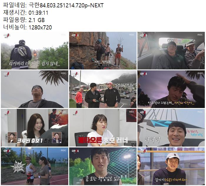 | 극한84.E03.251214.720p-NEXT.mp4 | 2.1 G | 01:39:00 | 1280x720 |