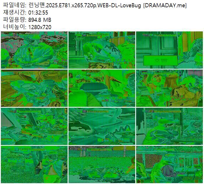 | 런닝맨.2025.E781.x265.720p.WEB-DL-LoveBug [DRAMADAY.me].mkv | 894.8 M | 01:32:00 | 1280x720 |