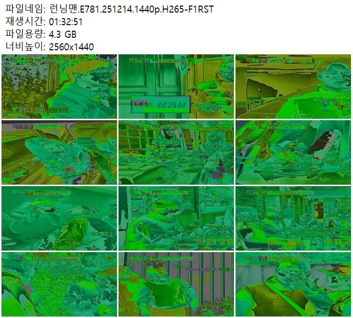 | 런닝맨.E781.251214.1440p.H265-F1RST.mp4 | 4.3 G | 01:32:00 | 2560x1440 |