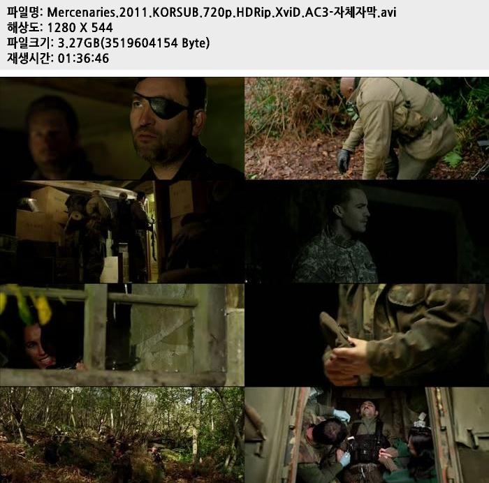 | Mercenaries.2011.KORSUB.720p.HDRip.XviD.AC3-자체자막.avi | 3.3 G | 01:36:00 | 1280x720 |